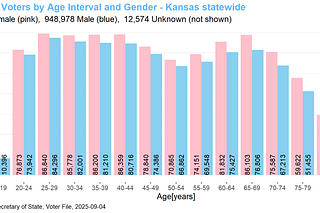 Kansas voter registration by party and age