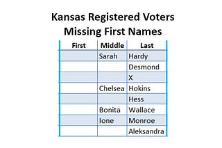 Eight Kansas registered voters do not have first names